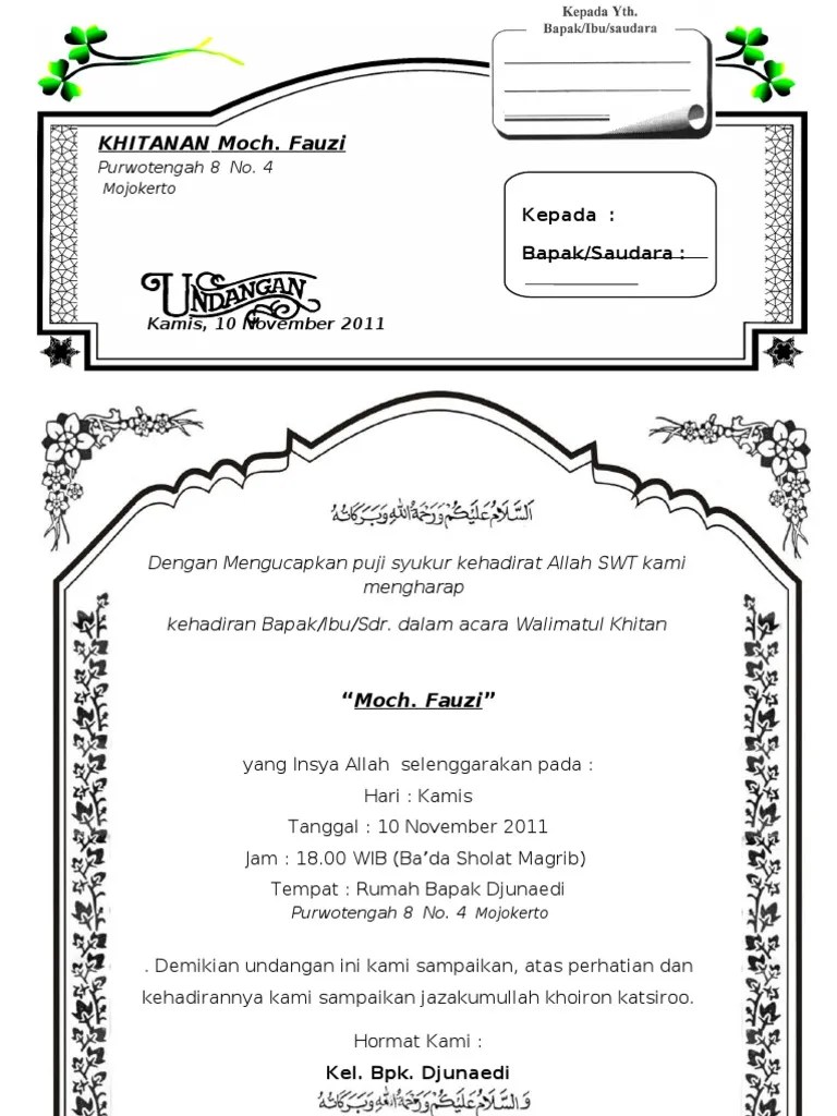 Mc Walimatul Khitan Jawa : Alhamdulillah, pada kesempatan ini kita bisa bertemu, berpadu dan bersatu disini majelis dalam rangka menghadiri walimatul khitan, yaitu khitannya bapak h.. Mc walimatul khitan bahasa jawa photograph effects. Amin makmun, ingkang amangku gathi, kawulo piniji pambiworo, wontenipun pawiwahan walimatul urs'y putro putrinipun ingkang asma raden bagus imam ahmad bin ust. Contoh teks mc walimatul khitan bahasa jawa. Mc walimatul usa dengan bahasa jawa i. Template kartu ucapan yang bisa diedit, contoh teks mc bahasa sunda acara 17 agustusan, contoh undangan wisudah, contoh surat undangan pentas seni dalam bahasa inggris, download softcopy undangan nikah, download kalender one piece 2017, contoh surat bahasa inggris formal kelulusan untuk kepala sekolah, …